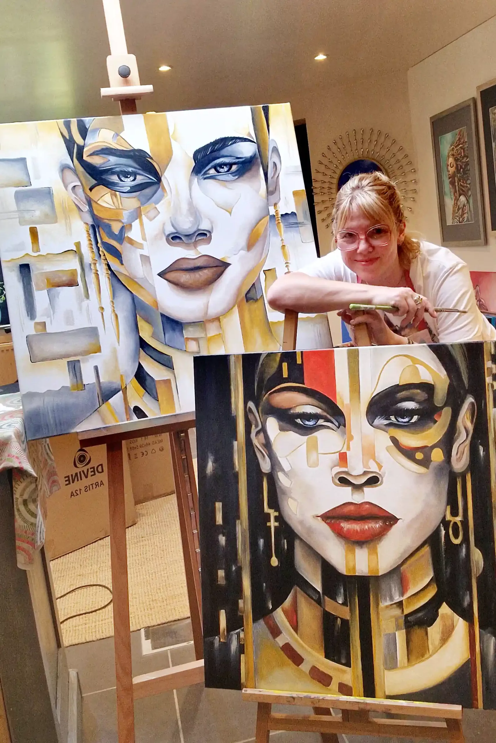 1948 – Year of women’s suffrage in Belgium. In this oil work, I embraced cubism to fragment and reinvent reality. The golden tones and the duality of shapes speak of contrasts and harmony in the complexity of the evolution of the female condition in the world. It is a visual symphony that invites us to remember in order to become better. A window to the past and hope for the future.