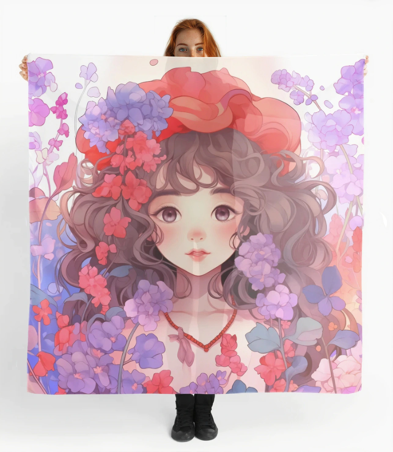 Son motif met en scène une jeune femme aux cheveux bruns bouclés, coiffée d’un béret rouge, enveloppée d’une profusion de fleurs de glycine violettes. Inspiré des œuvres d’Alphonse Mucha, ce design célèbre la féminité, la nature et la douceur.